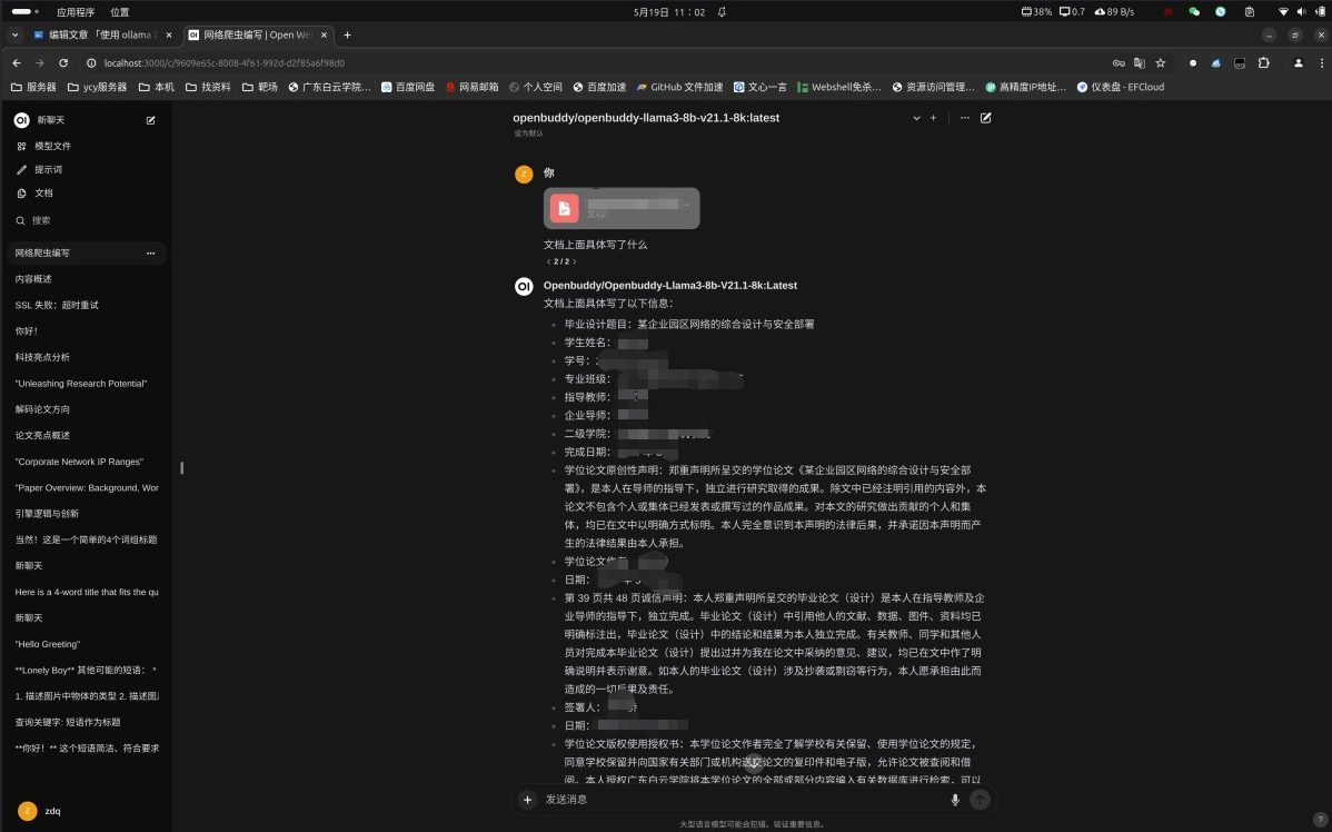 Open WebUI还有很多其它功能,比如它本身自带RAG。可以在对话框中输入“#”,然后跟上网址,即可访问网页的实施信息,并进行内容生成。 还可以上传文档,基于文本进行更深层次的知识交互。如果你对知识库的要求不高,做到这一点以后,基本能满足大多数个人的需求了。