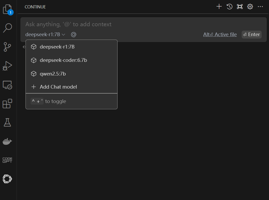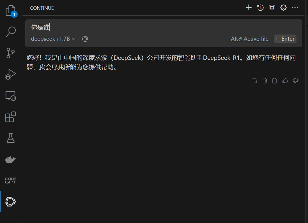 保存后我们再次打开Continue的聊天界面。